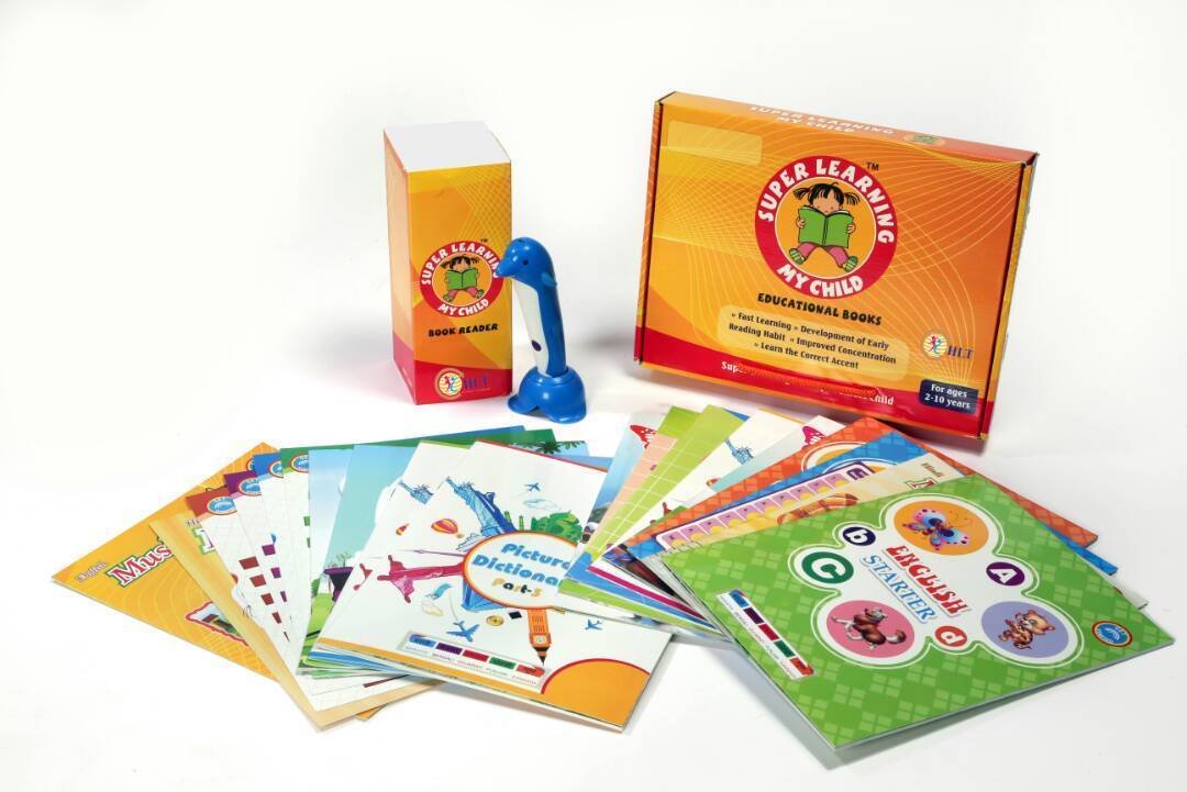 Super Learning my child is an innovative and smart way for teaching kids from age group of 2 to 8 years. It consists of 12 books that covers subject like English, Hindi, Maths, picture dictionary, rhymes and stories. There are additional 9 cards for music , stories and common phrases in foreign languages. These books come with talking pen which makes these books smart and interactive. Just hold the pen over a word or image of a book and pen will speak that word or name of the image like a magic. Children will just love to read these books with the help of this pen and will learn from these books in a fun way. Each book has activity based games that children will love to play and at the same time can self evaluate. Children will enjoy learning from this great product both alone as well as in group.Plz see the demo video here.https://www.youtube.com/watch?v=5QW9xG-nsMA&t=2s